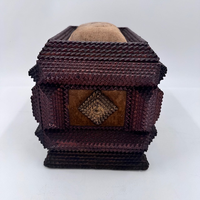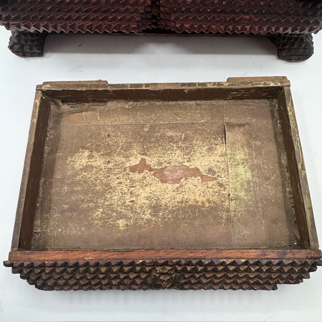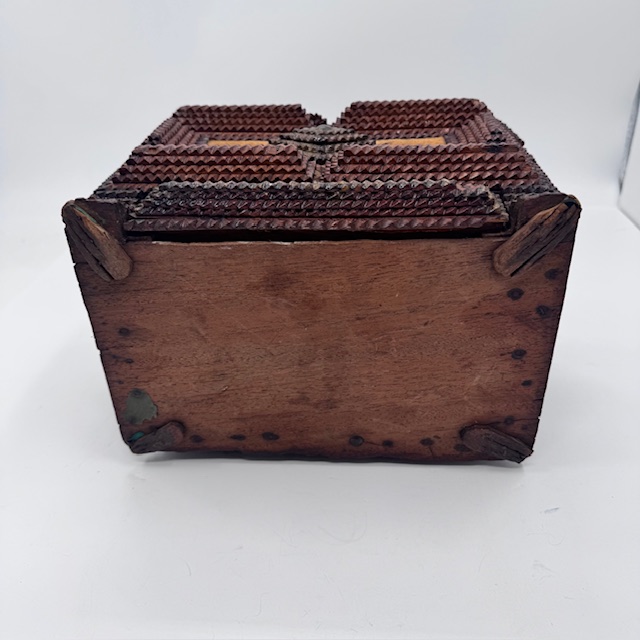 Deze Tramp Art werd gemaakt met sigarenkistjes
