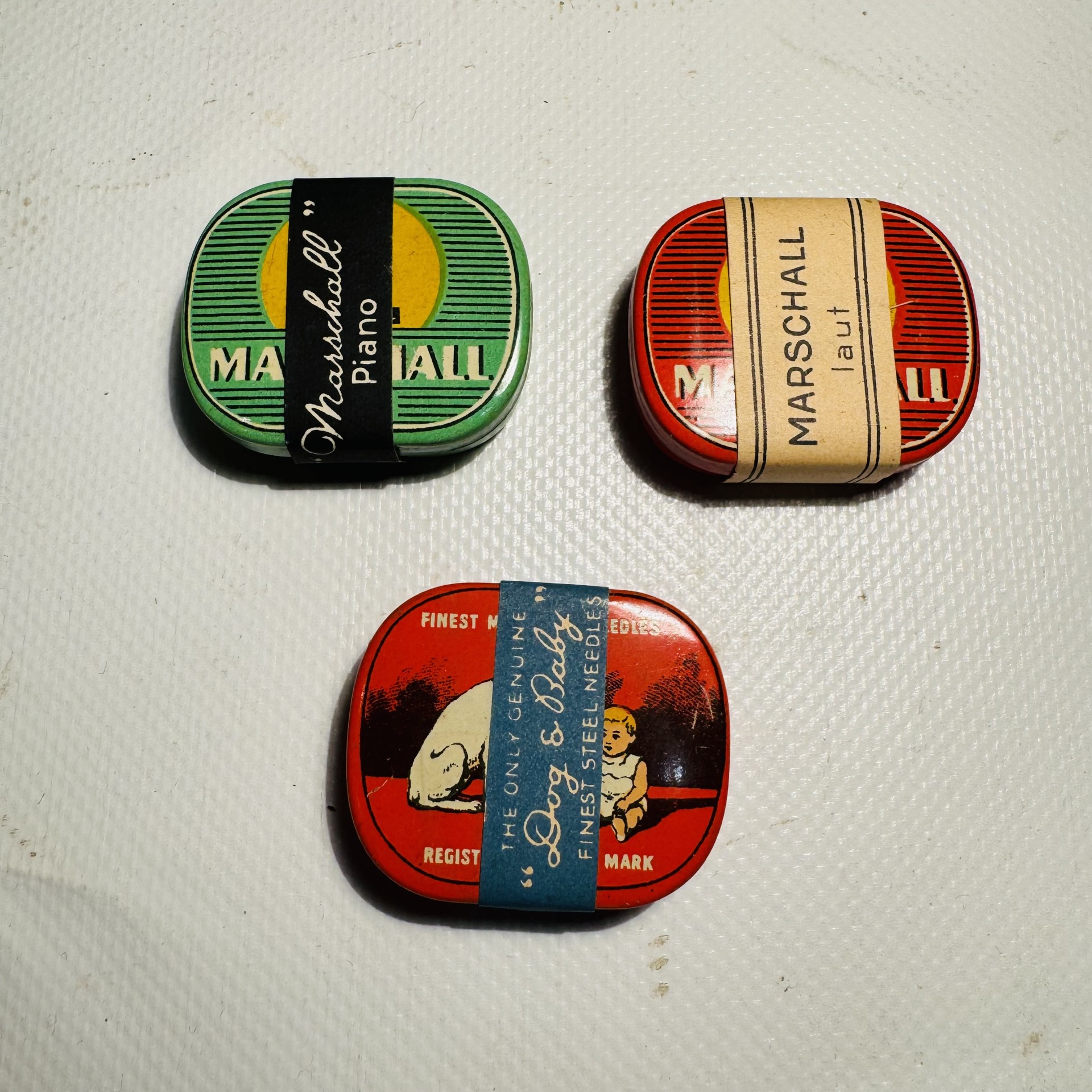 Set van 3 originele doosjes met pick-up naalden nog erin. Marschall (Piano en Laut) en His masters voice.